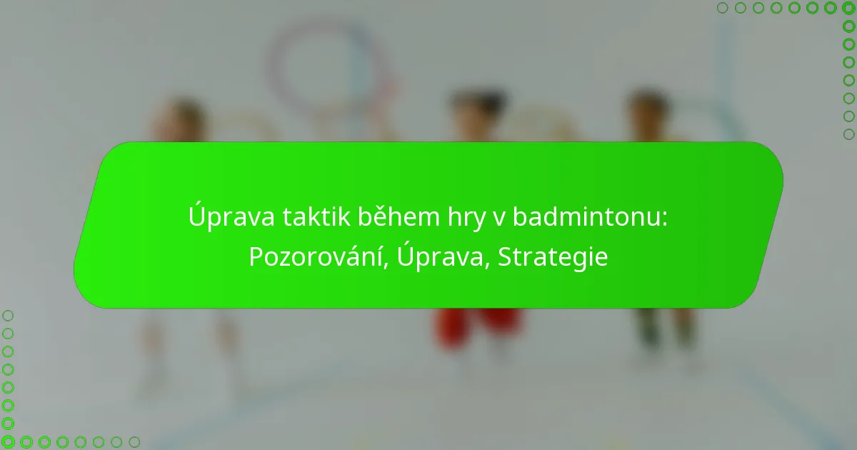 Úprava taktiky během hry v badmintonu zahrnuje pečlivé pozorování, rozpoznávání vzorců, hodnocení výkonu a včasné úpravy. Tyto komponenty jsou nezbytné pro efektivní reakci na protivníky a zlepšení celkové hry.